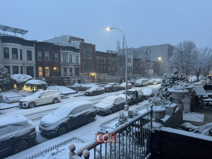 תיעוד ראשוני: רחובות קראון הייטס בברוקלין ניו יורק, מכוסים בשלגים שיורדים עם בואה של הסופה החזקה לאזור