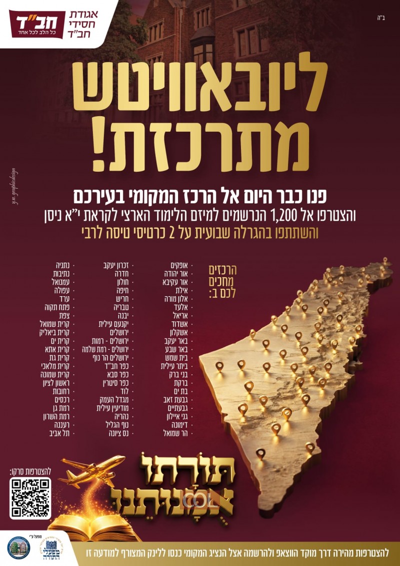 'תּוֹרָתוֹ אֻמָּנוּתֵנוּ' לקראת פורים: מתאחדים בלימוד תורת הרבי