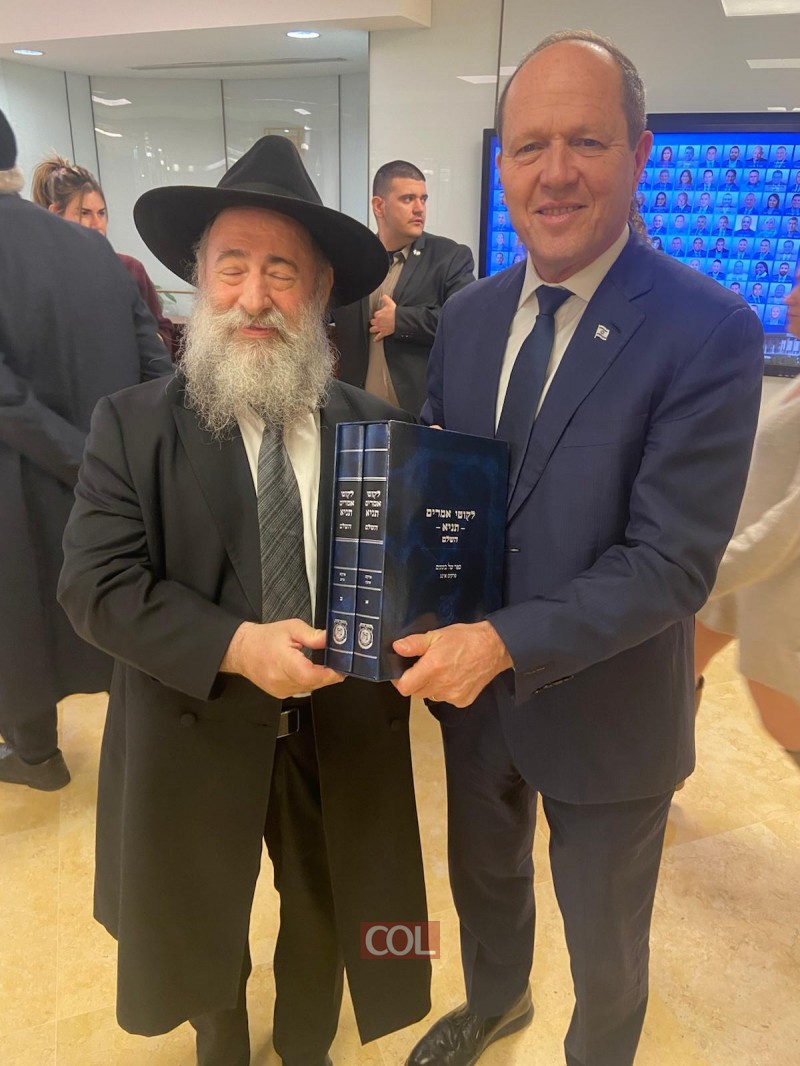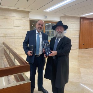 שליח הרבי לאגד ומשרד התחבורה - הרב מענדי וילהלם חילק לידידיו, שרי הממשלה וחברי הכנסת, שי אישי לקראת חג הפורים, את סט ספר 'התניא השלם' והביא להם את דברי הרבי על הפורים ומהות החג ומנהגיו