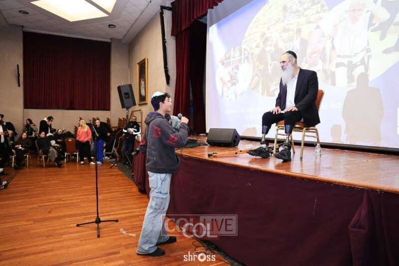 שליח הרבי הרב לירז זעירא, שרגליו נקטעו בעת שירותו הצבאי בסוריה במלחמת ה'תקומה', עודד כ-2,000 בני נוער מכל העולם שנתקעו בקראון הייטס בשל סופת השלגים החזקה שפקדה את מדינת ניו יורק (צילום: שלום ראס)