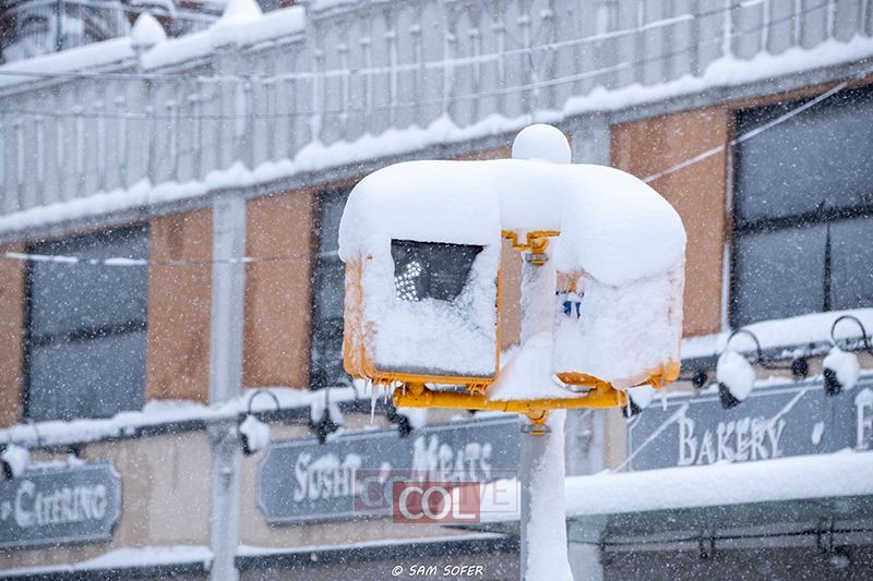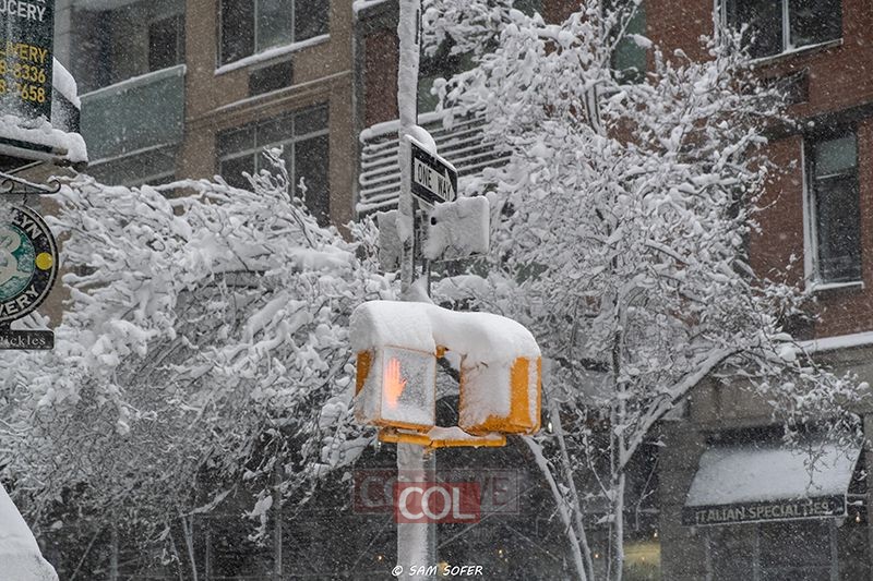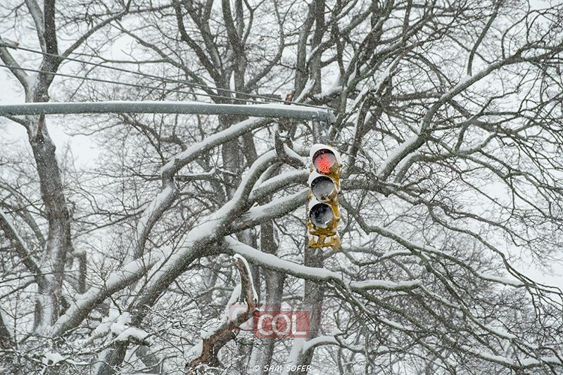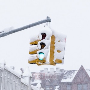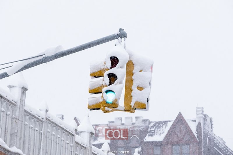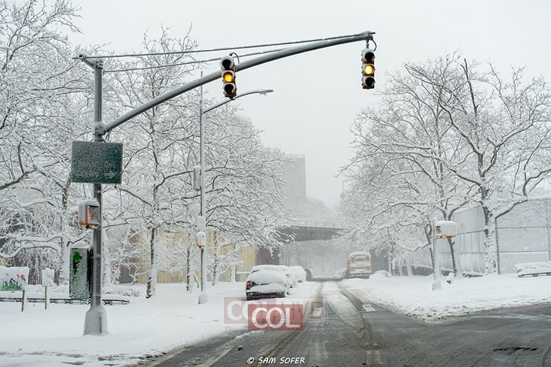 קפאו במקומם: רמזורי העיר ניו יורק מהבהבים ללא מטרה בסופת השלגים, לאחר שהעירייה אסרה על נהיגה בכבישים ותנועת כלי-רכב, בעקבות הסכנה הגדולה (צילום: סאם סופר)