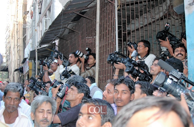 בהקשר נאומו של נתניהו בכנסת במהלך ביקור רה"מ ההודי: תמונות ארכיון משנת תשס"ט, בהן נראים שוטרים הודים ועיתונאים בפתח בית חב"ד מומבאי, יום למחרת הרצח של השלוחים הקדושים הרב גבי ורבקי הולצברג הי"ד וקדושים נוספים