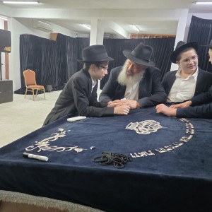 הרב יוסף יצחק פבזנר מפריז שבצרפת, שהגיע לגאנה שבאפריקה המרכזית לרגל בר מצווה לנכדו התמים הלל מאיעסקי, בן שלוחי הרבי למדינה, בשיח עם נכדיו ערב לפני השמחה המשפחתית