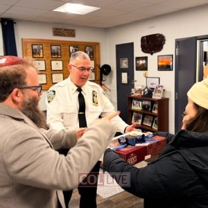נערים ונערות מ'חב"ד לנוער' שהגיעו מרחבי תבל לאירוע השיא של סיטיין שנערך בניו-יורק ו"נתקע" בשל סופת השלגים הכבדה, הכינו אוזני המן והעניקו אותם לאנשי משטרת ניו יורק כהוקרה על האבטחה בסוף השבוע