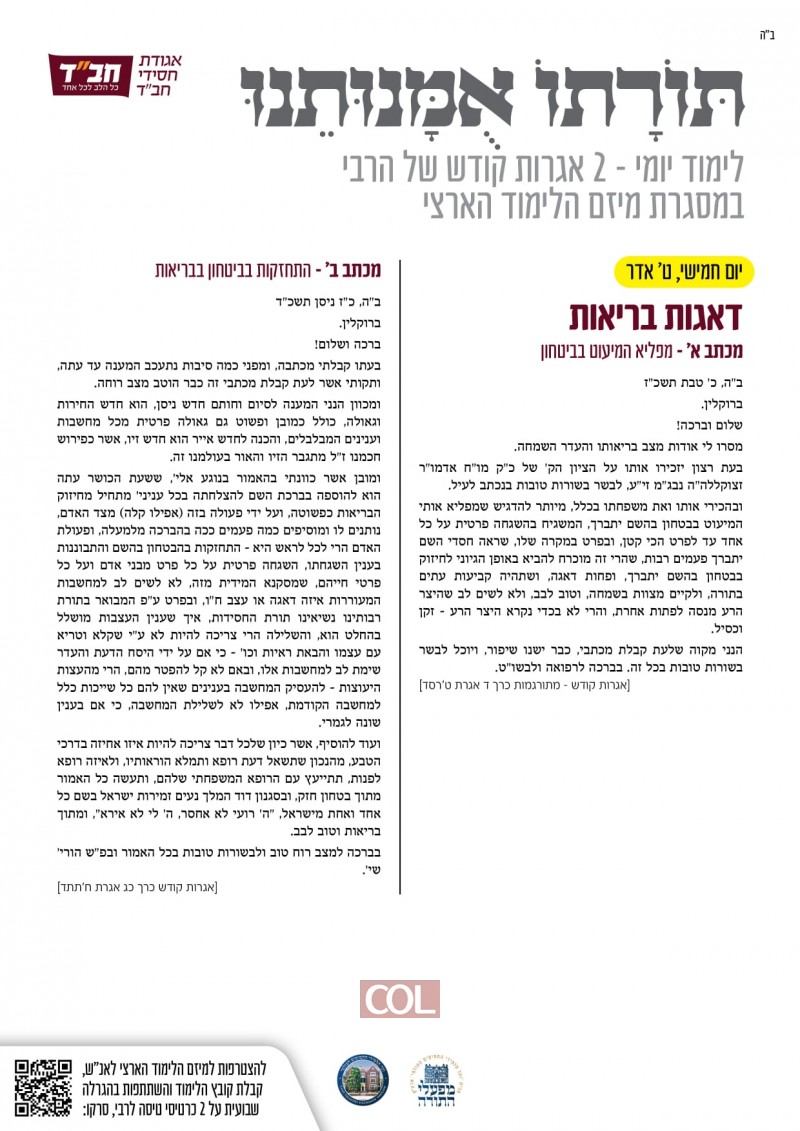 ניצוץ של התקשרות: לומדים את האגרת היומית כהכנה לי"א ניסן