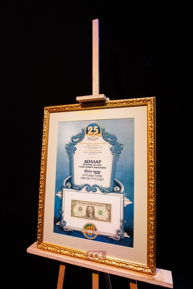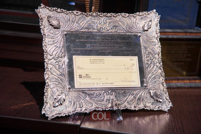 הסעודה הגדולה השנה נתרמה על ידי נשיא איגוד הקהילות היהודיות בחבה"ע, הנגיד החסידי הר' לוי הלוי לבייב, מראשוני התומכים של קרן הגמ"ח, ואותו ייצג חתנו כבנו הר' דוד הלוי אליעזרוב, שקיבל עבורו תשורה ייחודית ונדירה מטעם הנהלת הגמ"ח - צ'ק בחתימת קדשו של הרבי זי"ע ע"ס פעמיים ח"י דולאר.