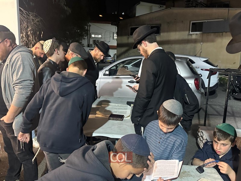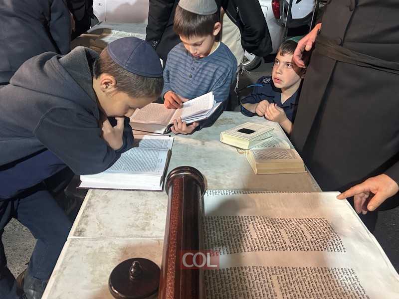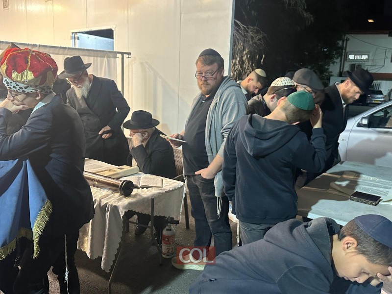 קריאת המגילה בבית הכנסת 'פיצע שול' בכפר חב"ד. צילום: ר' שמואל ריבקין
