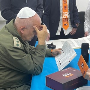 מרגש: בעיצומה של המלחמה, מפקד אגף התקשוב אל״מ ירון טהר הגיע להקשיב לכל קריאת המגילה, במשך כחצי שעה ובסיום הצטרף לשמחה וריקודים למפלת המן וניצחון עם ישראל. את המגילה קראו אנ"ש ובחורים מכפר חב"ד