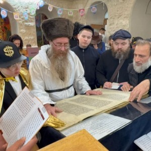 שושן פורים בירושלים: קריאת מגילת אסתר בבית כנסת חב"ד ברחוב יפו עם רב מרכז העיר ושליח הרבי הרב יוסף יצחק סלונים