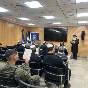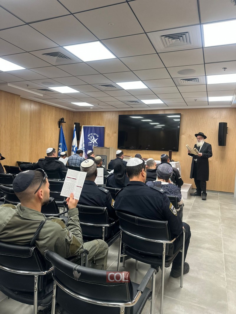 בתחנת משטרת אילת התאספו בחג הפורים השוטרים כדי לשמוע את קריאת המגילה | בין המאזינים היה מפקד התחנה ממ"ר אלון כלפון, שהודה לרב שמעון אייזנבך, רבה של שכונת השחמון בעיר, על שזיכה את השוטרים וגם הביא להם משלוחי מנות