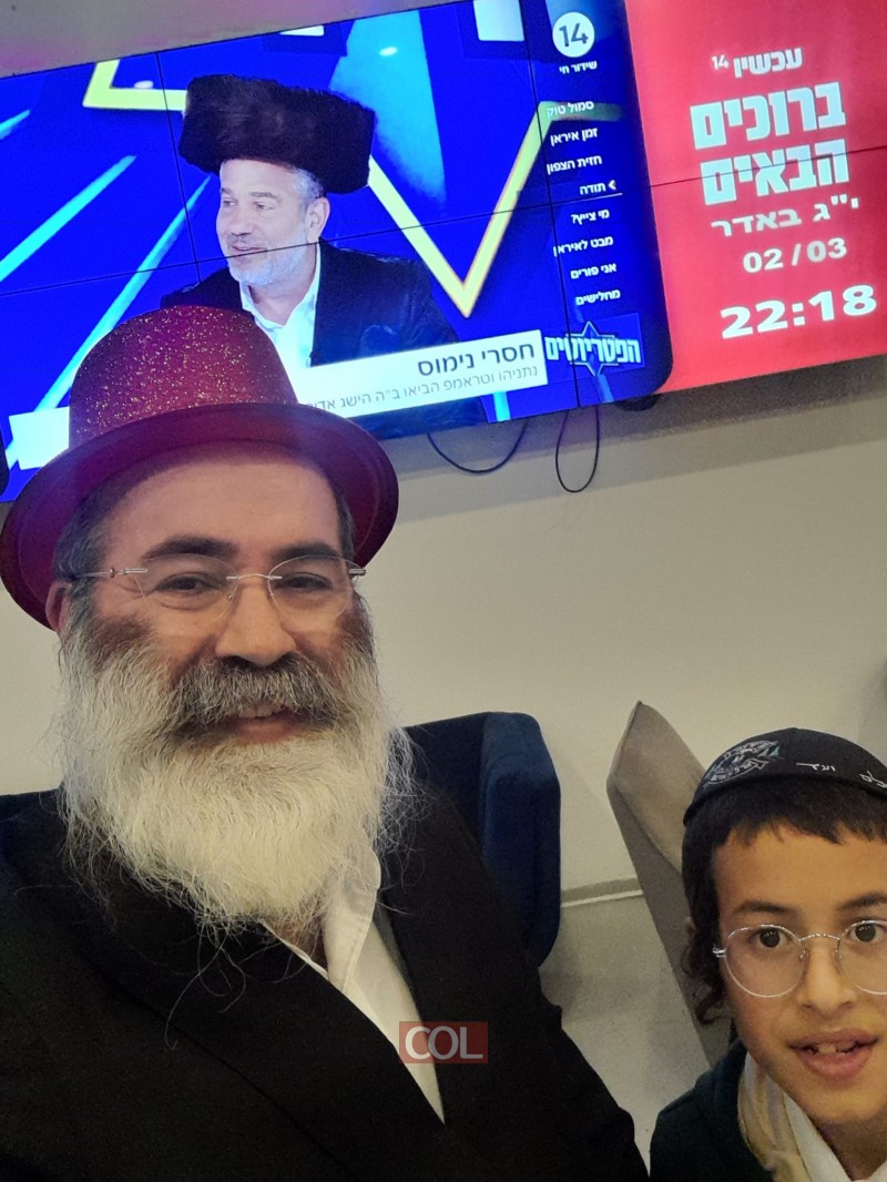 זו השנה השניה: מנהל בית חב"ד לוד הרב מנחם מיכאלשוילי מלווה בבנו, הגיע לקרוא את המגילה בערוץ עכשיו 14 בטלוויזיה, ולהביא בפני שדרי ועובדי ערוץ 14 את דבר הרבי על מצוות החג