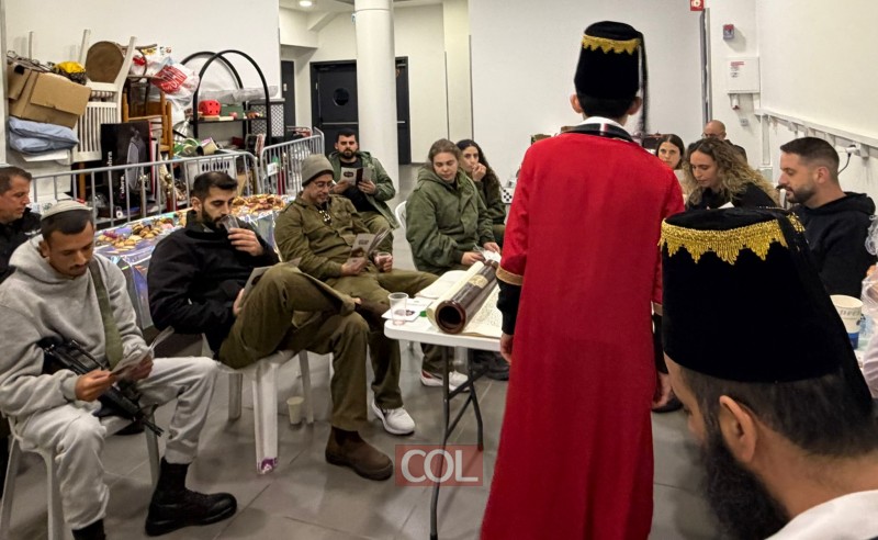 פחות מ-48 שעות לאחר שהחליפו את בגדי היום-יום במדי ב' ונשק, התכנסו הלוחמים לשמיעת קריאת המגילה מפי הרב מנדי אליאס, שליח חב"ד בשכונת הדר-אפקה.