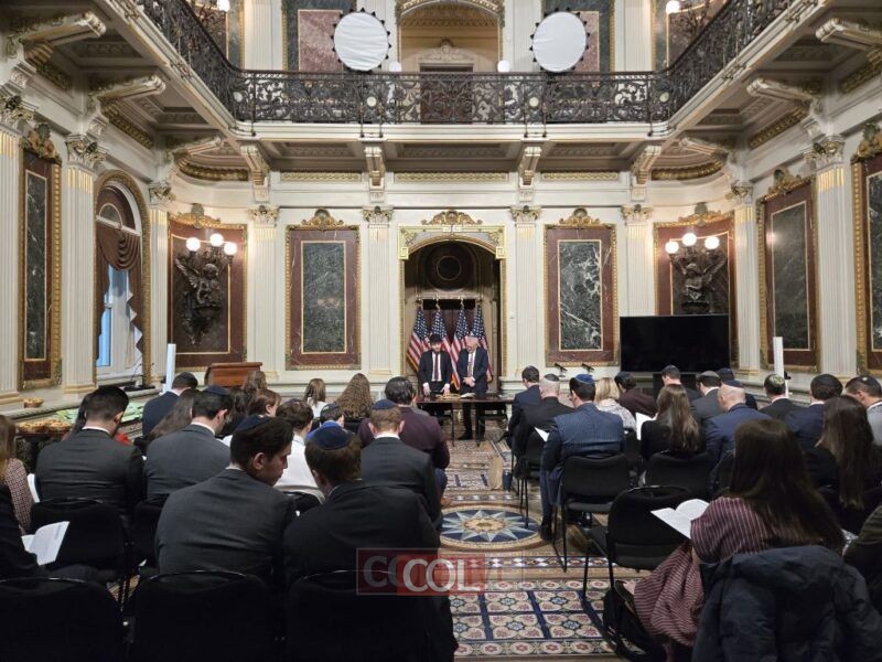 בבית המלך: כ-50 מאנשי הסגל היהודים של ה'בית הלבן' בוושינגטון, שמעו את קריאת מגילת אסתר משליח הרבי הרב לוי שמטוב, בזמן שאמריקה נלחמת לצד ישראל מול איראן, פרס של ימינו