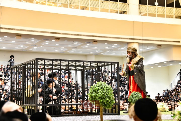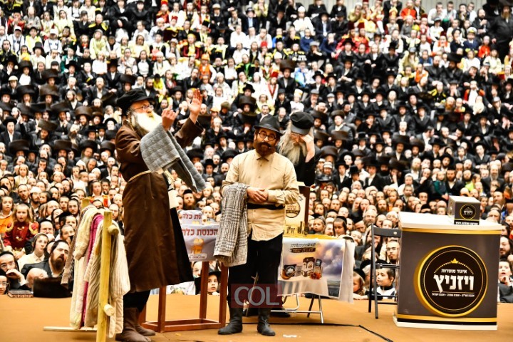 בטיש שערך השנה הרבי מויז'ניץ שליט"א, בבית מדרשו בבני ברק בצאת חג הפורים, רגע השיא נרשם בעת ה"פורים שפיל" - ההצגה המסורתית שסחפה את הקהל למחוזות רחוקים.
