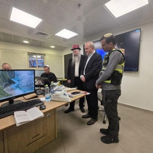 השליח ברובע הקריה באשדוד הרב יוסף יצחק פרידמן בקריאת מגילה בחמ"ל העירוני לראש העיר ד"ר יחיאל לסרי וצוות החמ"ל