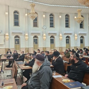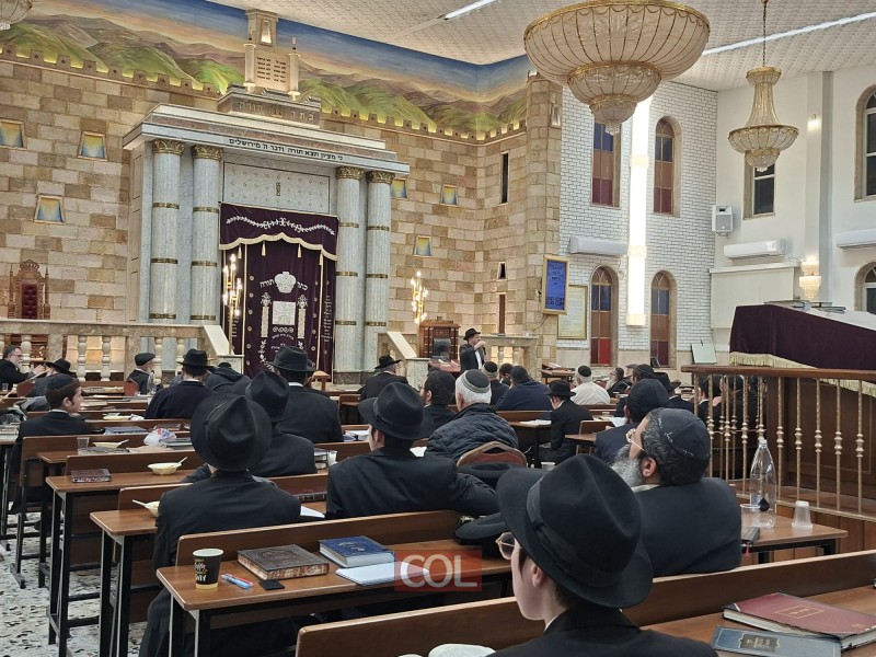 בבית הכנסת בית מנחם, בסמיכות למרחב המוגן, התקבץ קהל רב לשיעור מיוחד על שיחת הרבי בנוגע לחשיבות ההודאה על ניסים, אותו מסר המרצה הרב שניאור אשכנזי | בסיומו פרצו המשתתפים בריקוד שכולו הודייה
