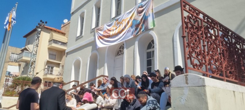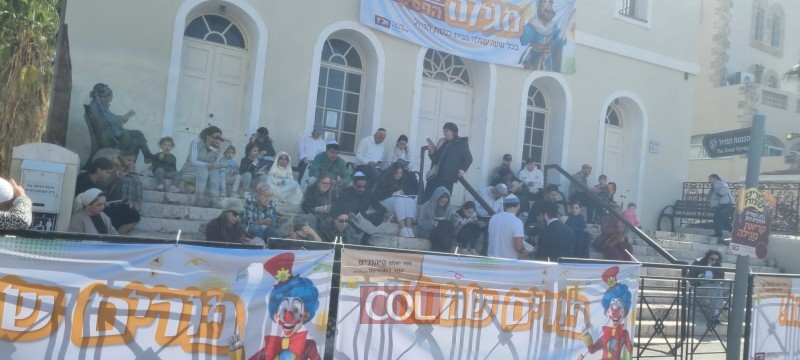 קריאות מגילה מרגשות על מדרגות בית הכנסת הגדול בראשל"צ