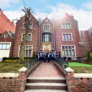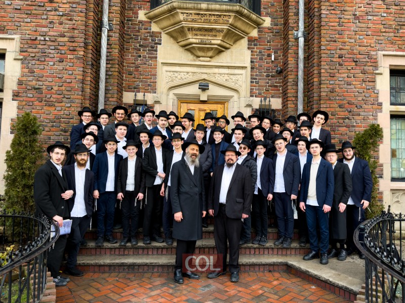 תלמידי שיעור ב' ו-ג' מישיבת ׳אנטוורפן׳ (בלגיה) בתמונה קבוצתית מרגשת על חזית 770 בעיצומו של מסע נעלה בחצרות קודשנו.