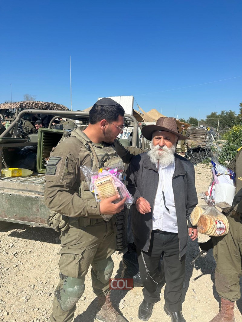החיילים, שחלקם נמצאים בכוננות גבוהה ובלחימה ממושכת, התרגשו עד דמעות מהחום והאהבה שהביאו עמם החסידים. המשלחת לא הסתפקה רק בשמחה חיצונית, אלא דאגה ל"משלוח מנות" גשמי ורוחני כאחד: חלוקת מארזים חגיגיים לצד הנחת תפילין המונית, דברי תורה מענייני דיומא וחיזוק האמונה והביטחון.