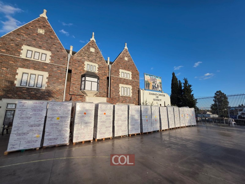 לאחר הפורים: אלפי חבילות של מצות מהודרות לחג הפסח הגיעו הבוקר אל חצר הבית חב"ד בשדרות בניהול שליח הרבי - הרב משה-זאב פיזם
