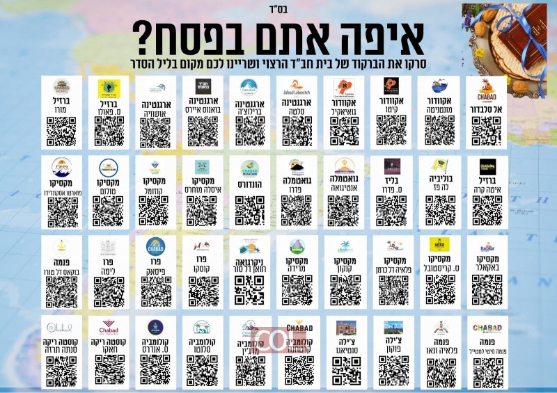 עושים סדר - וביטחון: עשרות שלוחי הרבי באמריקה הדרומית ואמריקה המרכזית מפרסמים לעשרות אלפי ישראלים תמונה מרוכזת עם ברקוד לרישום עבור ליל הסדר בבתי חב"ד הפזורים ביבשת