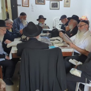 חברי הכולל של הרה''ח ר' חיים בן ציון חן ע''ה משיכון חב"ד בלוד, שנפטר השבוע לעולמו, בלימוד בביתו שבלוד לעילוי נשמתו