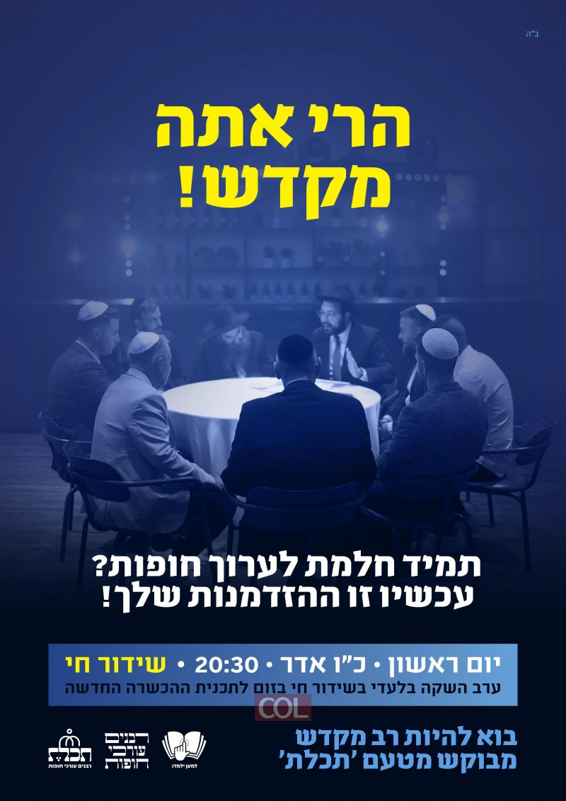 אם גם לך יש את הרצון לקדש שם שמים בשליחות רבנית מובילה, ולהצטרף למאות רבנים עורכי חופות שמקדשים שם שמים מידי ערב מתוך מאור פנים. הערב הזה הוא בשבילך!