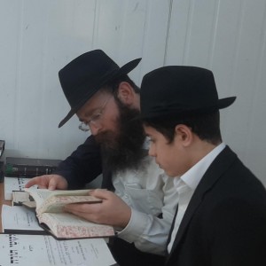 המשפיע הרב אלחנן (חוני) רייצעס בלימוד אישי עם תלמיד בישיבה שהוקמה השבוע באלעד, במסגרת הישיבות אזוריות שנפתחו השבוע על ידי "ועד התמימים" בשורת מוקדים ברחבי הארץ