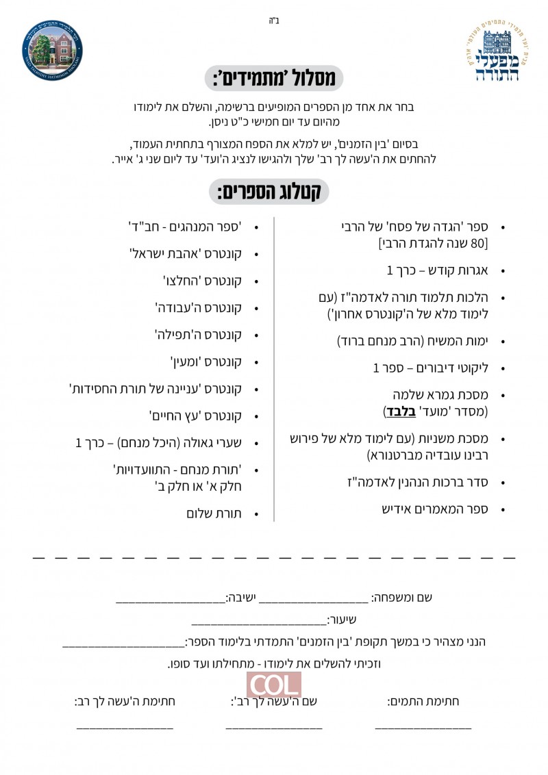 אחד החידושים המרכזיים השנה הוא מסלול "לומדים רמב"ם". כחלק מחיזוק תקנתו הקדושה של הרבי ללימוד הרמב"ם היומי, המבצע מעודד את התמימים להשקיע בלימוד ספר 'היד החזקה' באופן ראוי ומעמיק. לנבחנים בהצלחה במסלול זה, צפויות מלגות מיוחדות ויוקרתיות שיוענקו עם פתיחת "זמן הקיץ" בישיבות.