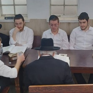 הרב אליהו לנדא, ראש ישיבת תומכי תמימים המרכזית בכפר חב"ד, במסירת שיעור לתלמידי התמימים הנמצאים בבתיהם בבני ברק בעקבות המצב הביטחוני. צילום: ערוץ DK