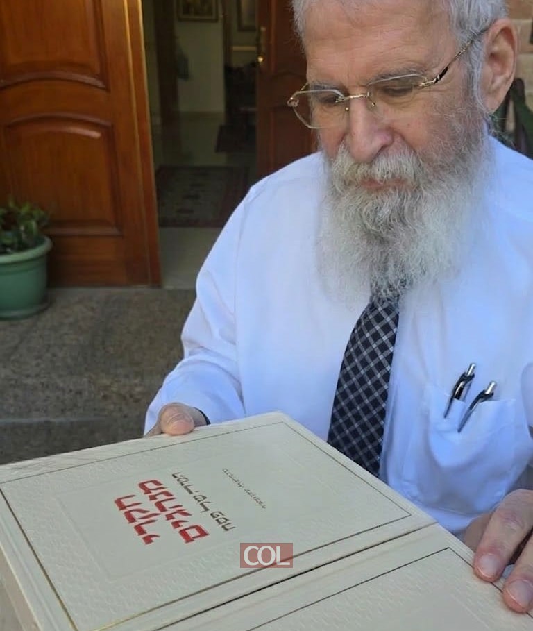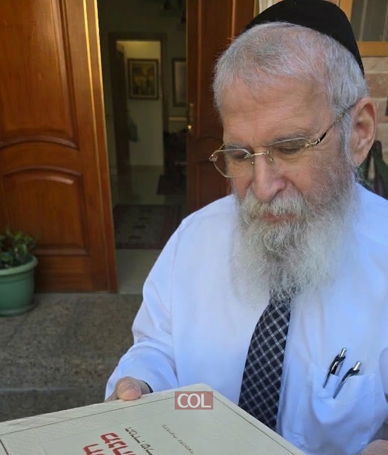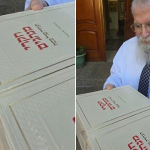 מתכונן לחג: הרב יוחנן גורארי' - רבה של חולון וחבר בית דין רבני חב"ד, מחזיק את ספרו החדש 'חקרי המנהגים' על ההגדה של פסח, שיצא לאור ממכבש הדפוס