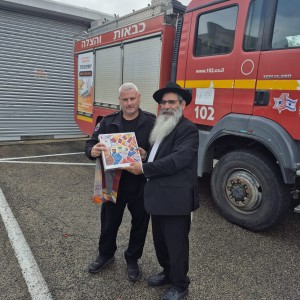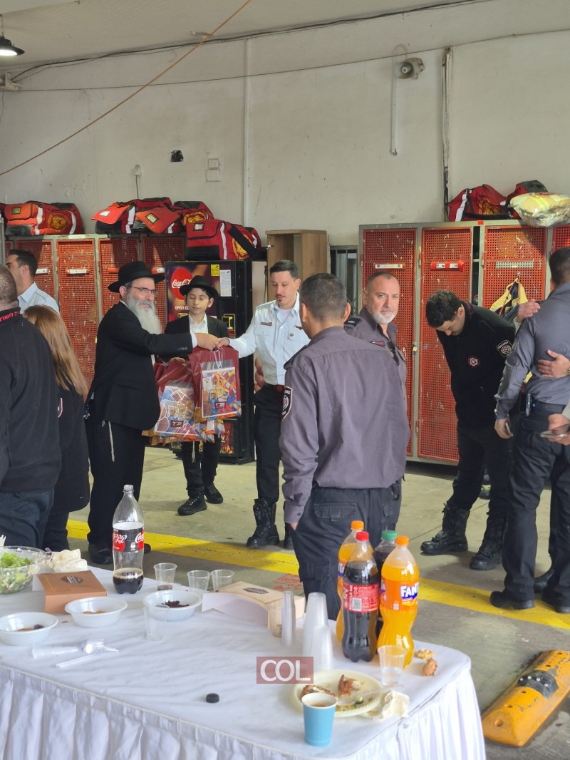 'הרמת כוסית' לקראת פסח בתחנת כבאות והצלה בחצור הגלילית, בהשתתפות צוות מערך הכבאות של מרחב גליל-גולן ומפקדיהם, ובשילוב ברכות והענקת דרגות ללוחמים. השליח הרב ניסן מור יוסף נשא דברי תורה והעניק מצות