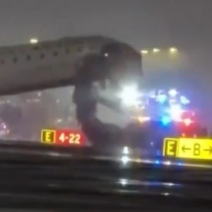 מטוס נוסעים התנגש בנחיתה ברכב בנמל התעופה בניו יורק