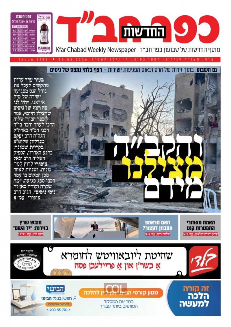 שבועון 'כפר חב"ד' יוצא לאור בסימן יחידויות בקודש פנימה: חסידים ושלוחים מהעולם חולקים את הרגעים האישיים, הצצה לתיעודים רבי ערך בהם נחשפו תגליות על מעורבות הרבי בביטון ארץ ישראל, תיעוד מיוחד מגוף ראשון משורת אישים שזכו ליחידויות לא שגרתיות והיחידות הראשונה של בחורים מצרפת שהביאה למהפכה ההיסטורית | במוסף 'נשימה': שליחת הרבי בהונולולו בראיון מיוחד ושתי שלוחות מרומניה וניגריה משתפות ברגעים מיוחדים ביי השליחות | במוסף החדשות: כל מה שקרה השבוע | מצורף: חוברת ההלכות של בי"ד רבני חב"ד | צפו בשערים