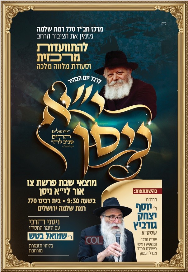 במוצ"ש: התוועדות י"א ניסן המרכזית ב-770 רמת שלמה בירושלים