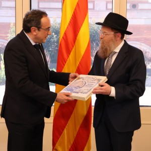 הפצת האור בעולם: השליח הראשי של הרבי לברצלונה שבספרד - הרב דוד ליברזון, העניק סט מצות מהודרות לקראת חג הפסח, לידידו - נשיא הפרלמנט של מדינת קטלוניה