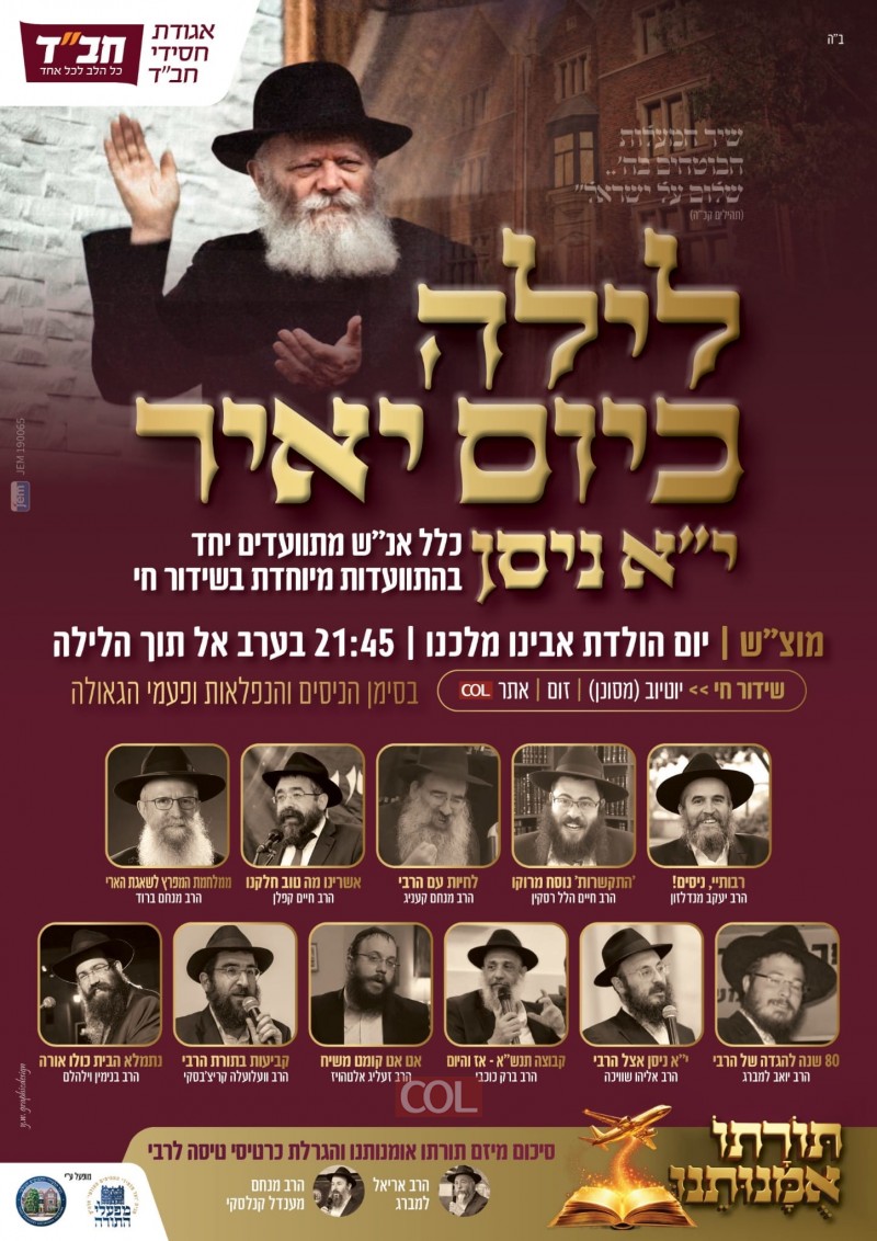 למעלה מ-5,000 חסידים, יותר מ-3,000 ביוטיוב וכ-2,000 בזום, השתתפו הלילה (מוצאי שבת) בהתוועדות ענק ליום י"א ניסן, בארגון אגודת חסידי חב"ד בארץ הקודש.