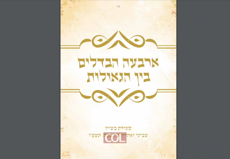 בימים אלו מתחזקים יהודים בצפיה לגאולה, מה שמתגבר והולך בחלק האחרון של חג הפסח, שבו חוגגים את "סעודת משיח" | כמו בשנים האחרונות, הפיק הרב מנחם מענדל רייצס קובץ מיוחד ובו "רביעייה" בעניני הגאולה והמשיח בשפה בהירה וקלה (בהתאם לחלוקה של ארבע כוסות) - מתאים מאוד לכל מי שמדבר בבית כנסת או בכל מקום אחר בסעודת משיח ובכל הזדמנות | הפעם הקובץ עוסק בהשוואת הגאולה ממצרים והגאולה העתידה, מתוך תקוה שנראה בקרוב את קיום היעוד "כימי צאתך מארץ מצרים אראנו נפלאות"