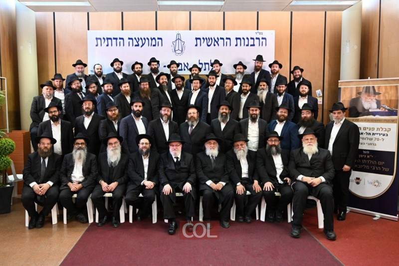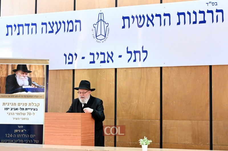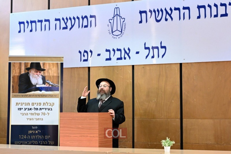 שלוחי הרבי בעיר ללא הפסקה תל אביב, בראשתו של השליח הראשי ורב קהילת חב"ד הרב יוסף גערליצקי, התכנסו היום באולם הכנסים של המועצה הדתית להתוועדות חסידית לרגל י"א ניסן, יום הולדתו של הרבי | תיעוד ראשון ב-COL, מהצלם מאיר דהן