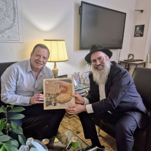 24 שעות לפני החג: הרב הרשי דרוקמן שליח הרבי בסאן מור שליד פריז בצרפת העניק מצה שמורה לידידו - ראש העיר היהודי, שהתרגש לקבל את החבילה לפסח