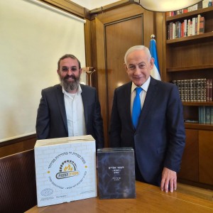 לקראת חג הפסח, סגן ראש עיריית ביתר עילית ונציג חב"ד ר' מאיר בר לב, העניק לראש הממשלה בנימין נתניהו מצות שמורות וסט התניא השלם, במסגרת ביקור במעונו