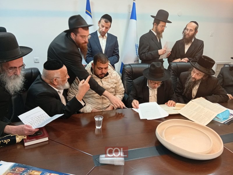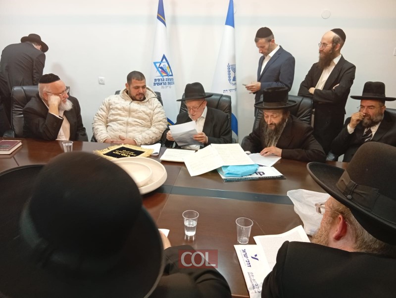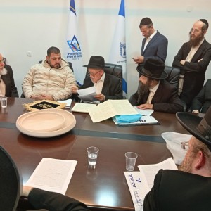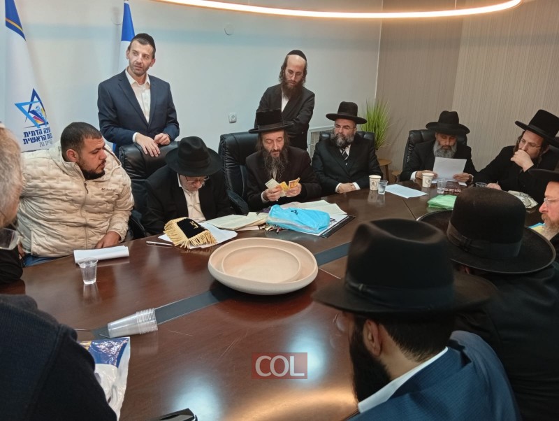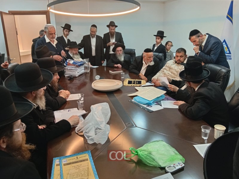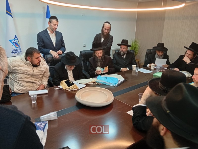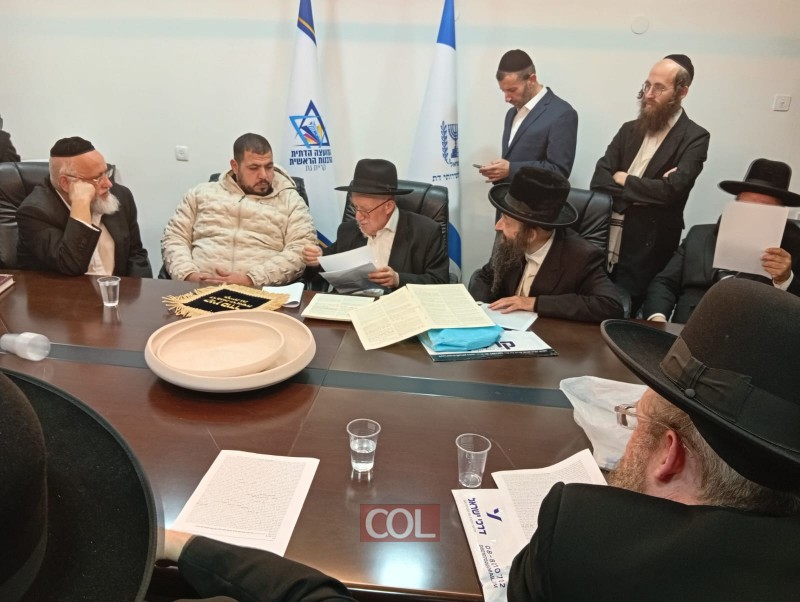 רב העיר קרית גת הרב משה הבלין, ורבני השכונות והקהילות מכרו את החמץ לגוי במועצה הדתית. השתתפו בין היתר: הרב גדליה ריזל רב סלונים, הרב אדיר איתן רב כרמי גת, הרב יוחנן טוורסקי קרטשניף, הרב מרדכי חרז רב קהל חסידים, הרב זילברשטיין רב קהילה קרטשניף, הרב ארוש רב עץ חיים, הרב בנימין זרו רב קהילת האתיופית, ר' שלמה ספז' ראש מועצה דתית קרית גת | כך זה נראה. צילום: אשר ישראלי