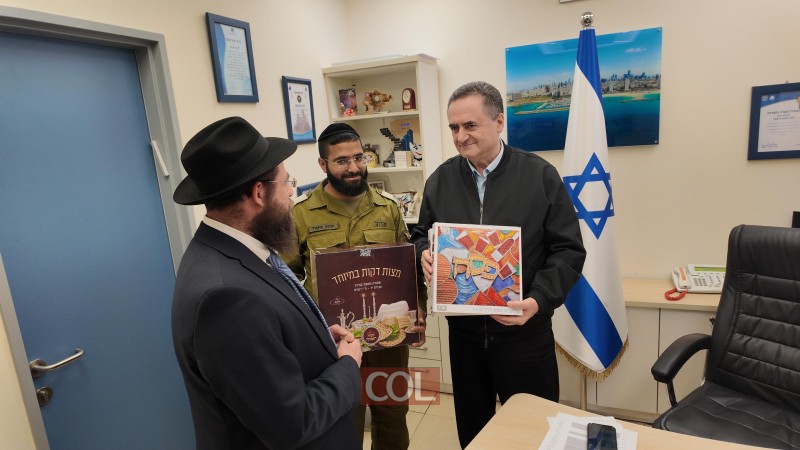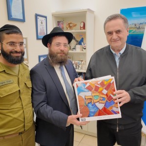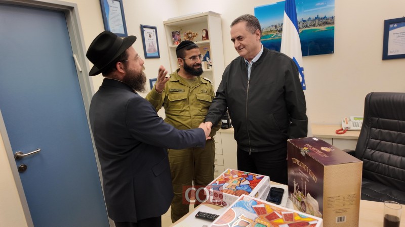 הרב מנחם אופן שליח הרבי לצה"ל וכוחות הביטחון, יחד עם הרב הצבאי הרב יהודה מחפוד, נפגשו ערב חג הפסח עם שר הביטחון ישראל כ"ץ והעניקו לו מצות שמורות ל'ליל הסדר'