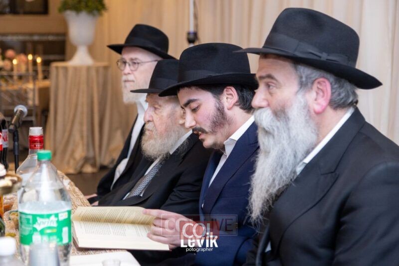 אורחים ובני משפחה חגגו בשמחת ה'ווארט' של התמים שמוליק ברוק מקראון הייטס, בן הרב חיים שאול ברוק מנהל ועד הנחות בלשון הקודש, עב"ג לאה גרינברג מאוהיו (צילום: לוי'ק קרומבי)