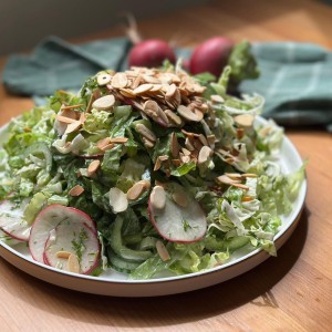 סלט טרי, רענן וקראנצ׳י עם שקדים קלויים שמכינים בדקות - מושלם כתוספת לכל ארוחה או ככוכב בפני עצמו | מאת נחמה בן עגו