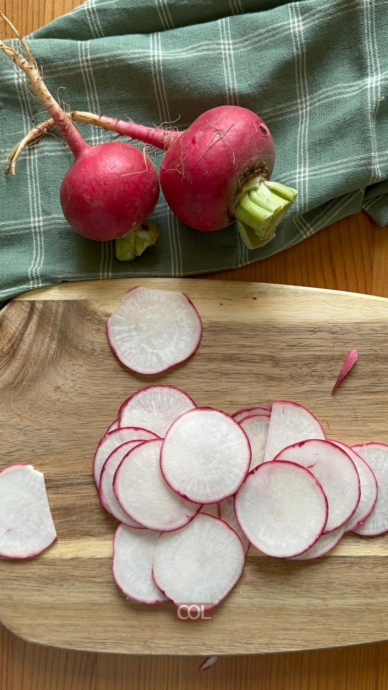 • 5 צנוניות גדולות / 10 קטנות, פרוסות דק