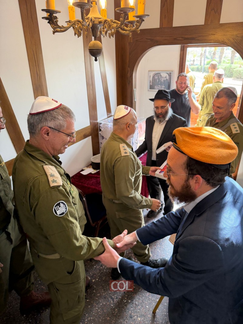 מפקדים בכירים בביקור מלחמה וחג: רגע מרגש נרשם כאשר משלחת קצינים בכירים מפיקוד העורף ובנוסף מפקדים מאגף התקשוב, הגיעו לביקור מיוחד במוקד העשייה – חמ"ל 'עזר לחייל' בכפר חב"ד. הקצינים התרשמו עמוקות מהיקף הפעילות מה שגרם לקידוש השם גדול ונחת רב לרבי. בהמשך ביקרו במאפיית מצות המפורסמת בכפר חב"ד שם התקבלו ע"י יוסי חדד מהנהלת המאפייה ולסיום ביקרו בבית 770 לתפילה והכנה רוחנית לחג עם ווידאוו ושיחה של הרבי מפי הרב מנחם לאטר מנהל בית 770.