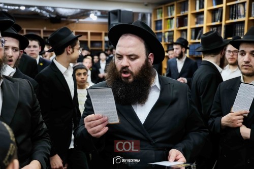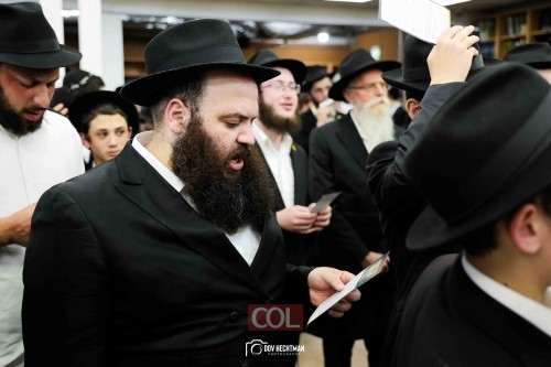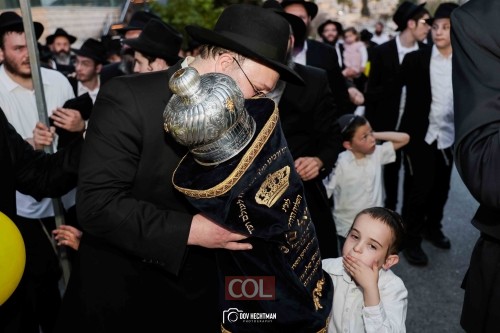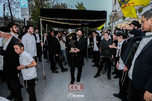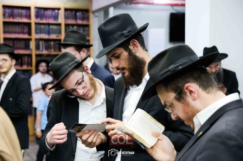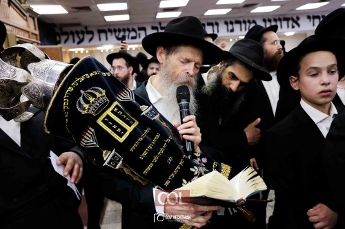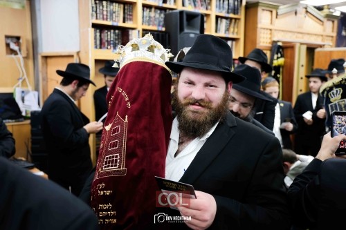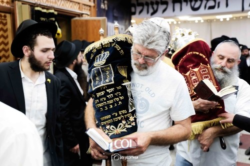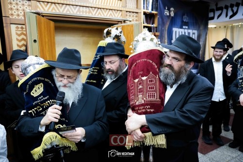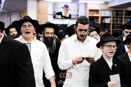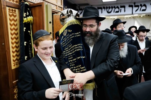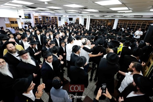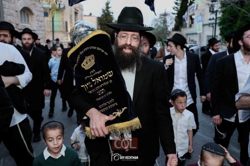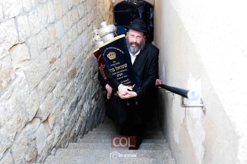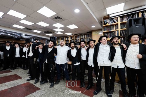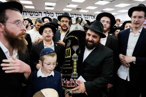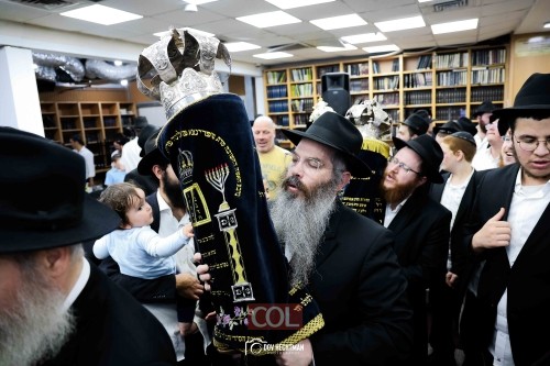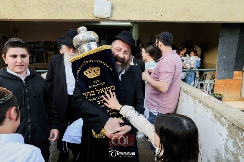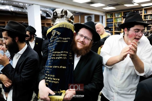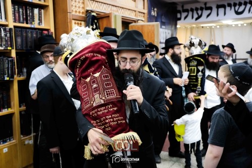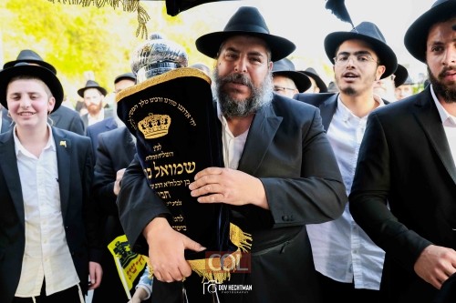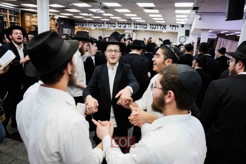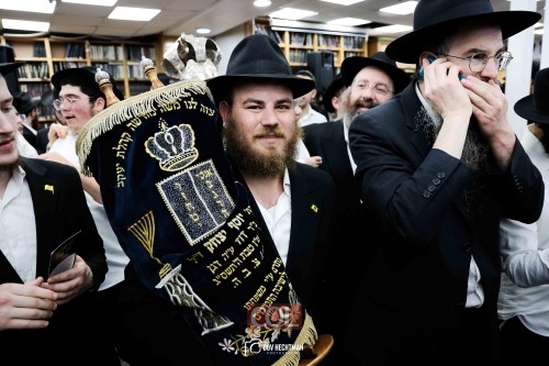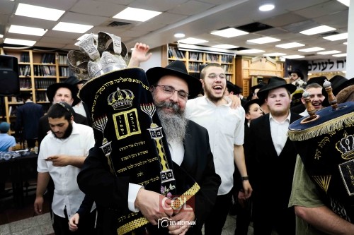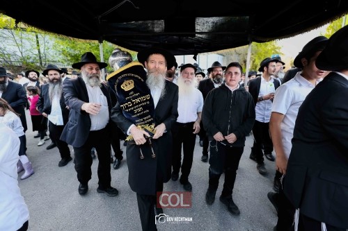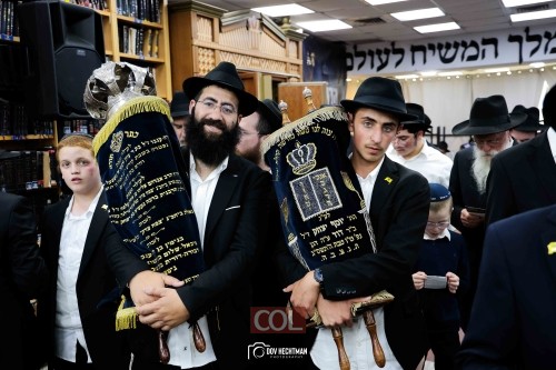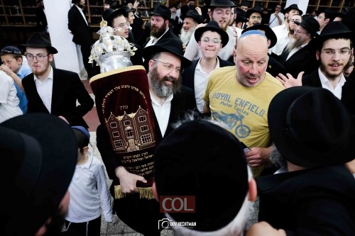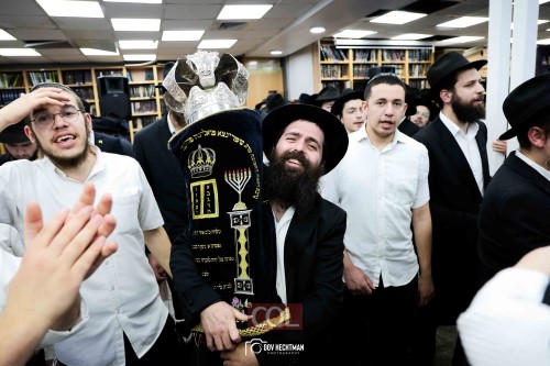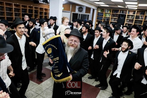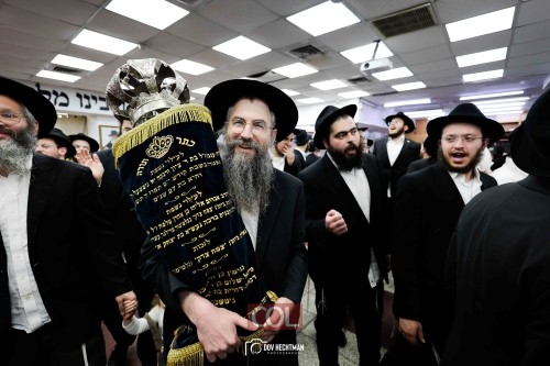 לאחר מכן הובל ספר התורה לכיוון זאל הישיבה גדולה בשמחה ובריקודים, בתהלוכה מרשימה ורבת משתתפים עם רבני הישיבה התמימים, וקהילת אנ"ש בעיר.