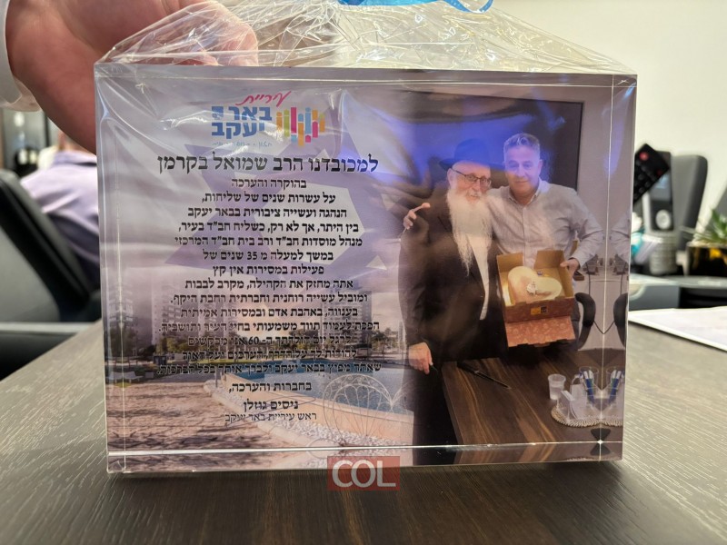 ראש העיר באר-יעקב ניסים גוזלן אירח בלשכתו אירוע מרגש, בו חגגו את יום הולדתו ה-60 לשליח הראשי של הרבי בעיר - הרב שמואל בקרמן וכן ציון 35 שנות עשייה ונתינה למען הקהילה • ראש העיר ושותפים לדרך הוקירו תודה לרב על עשורים של חסד, בניית קהילה לתפארת ומסירות אין קץ לכלל התושבים