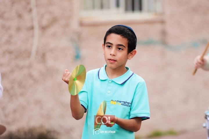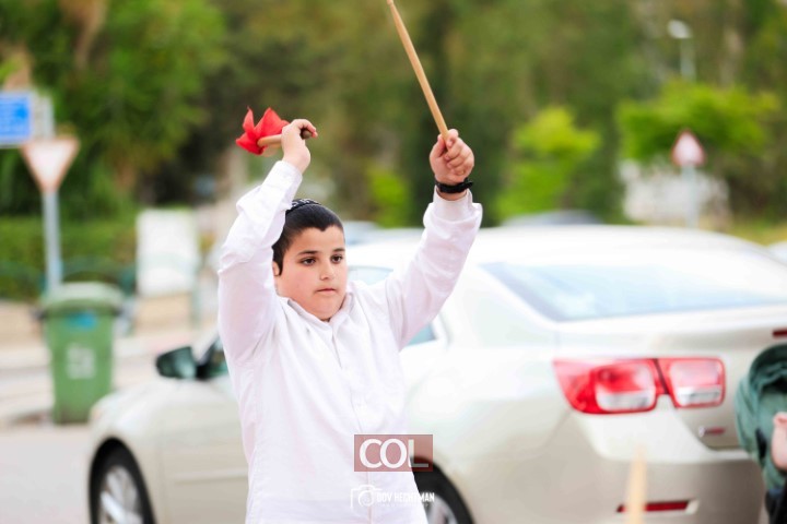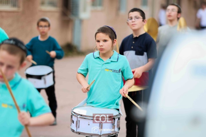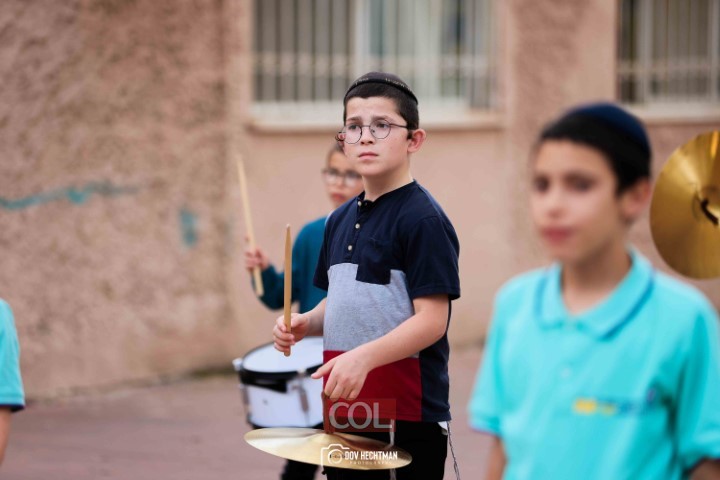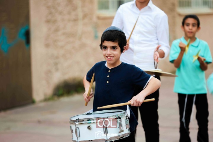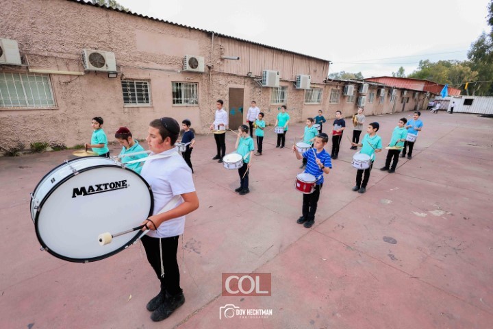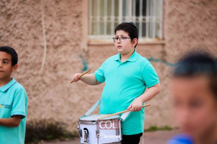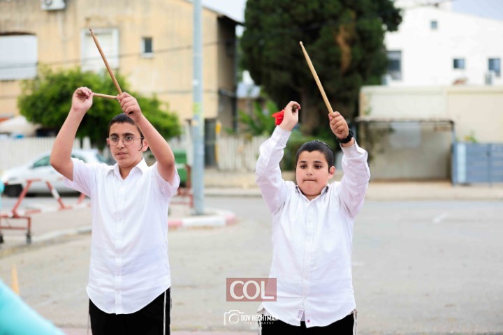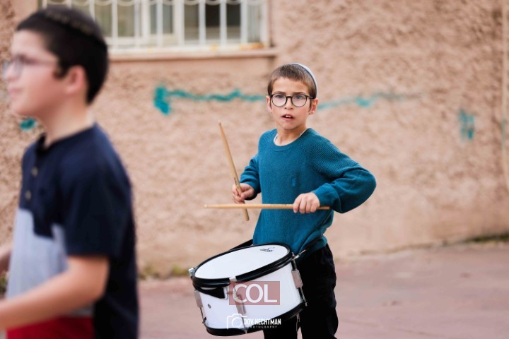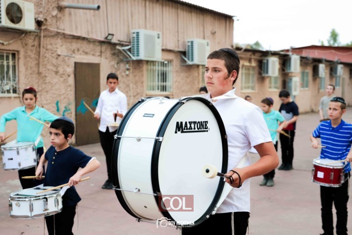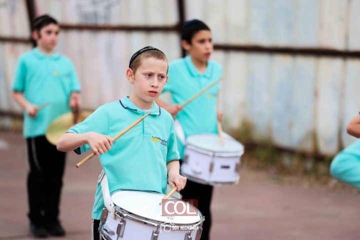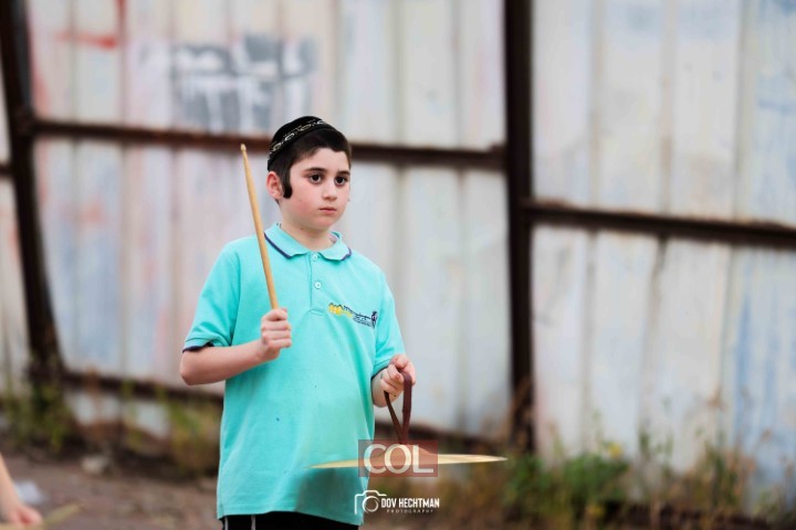 האימונים בעיצומם לתהלוכת ל"ג בעומר הגדולה בקריות המתקיימת כמידי שנה ע"י מרכז "נפש חיה" חב"ד ליובאוויטש הקריות, בביצוע תלמידי תלמוד תורה חב"ד "צבאות מנחם", בליווי המאמנים התמימים שניאור ישראל ושמואל פנונו | צילום: דוב בער הכטמן